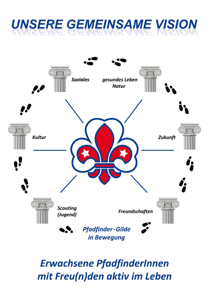 Die sechs Säulen zeigen jene Werte mit denen wir uns als Pfadfindergilde identifizieren. Sie überschneiden sich in vielerlei Hinsicht mit jenen Schwerpunkten der Jugend-Pfadfinderbewegung und geben uns Orientierung in der Gestaltung unseres Jahresprogrammes und im Leben als Gildnenpfadfinder.