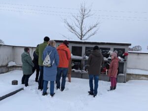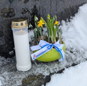 Bei allen Ruhestätten hinterließen wir Frühlingsblumen und eine Kerze als Zeichen unserer Erinnerung und Verbundenheit. Die liebevoll gestalteten Frühlingsboten wurden von Christa vorbereitet.