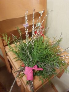 Traditionell wurden auch in diesem Jahr im Pfarrheim wieder Palmbuschen gebunden. Ein herzliches Dankeschön an Romana für die Organisation dieses gemeinschaftlichen und gruppenübergreifenden Projekts.